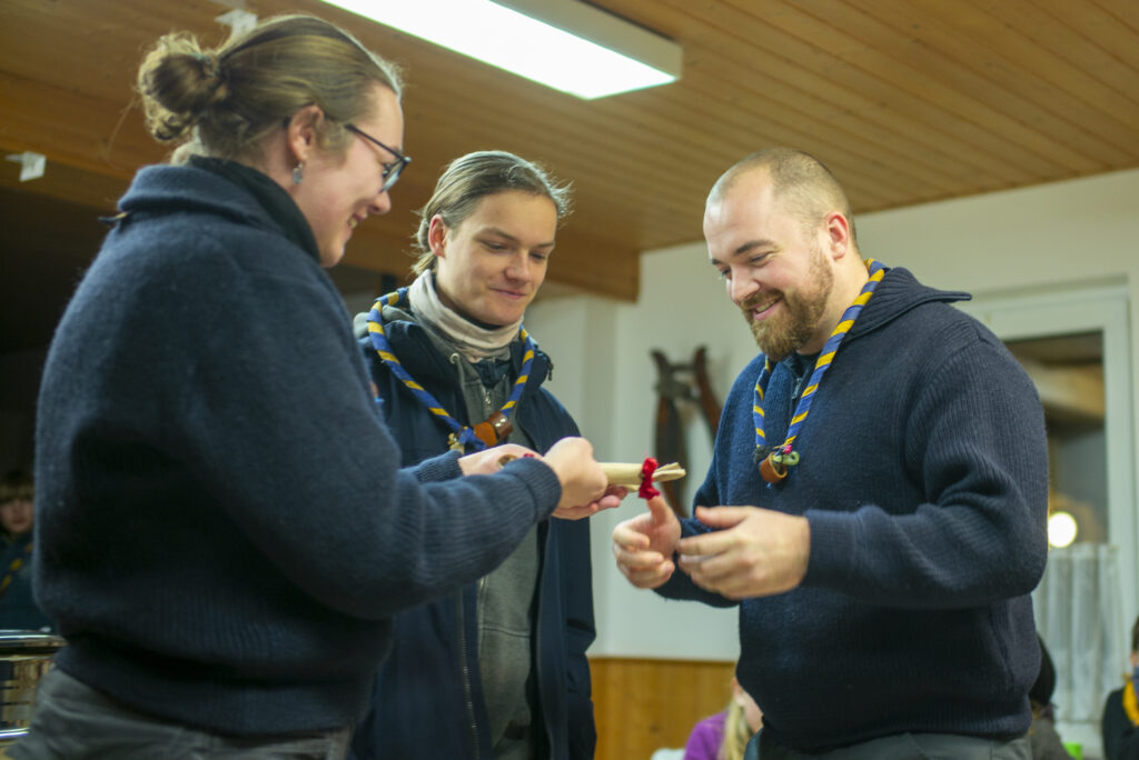 Nach dem Abendessen wurden dann noch neue Wölflinge und Sipplinge mit der Verleihung ihrer Halstücher in den Kreis der Pfadfinder:innen aufgenommen und der Tag mit einer krachenden Singerunde beendet.